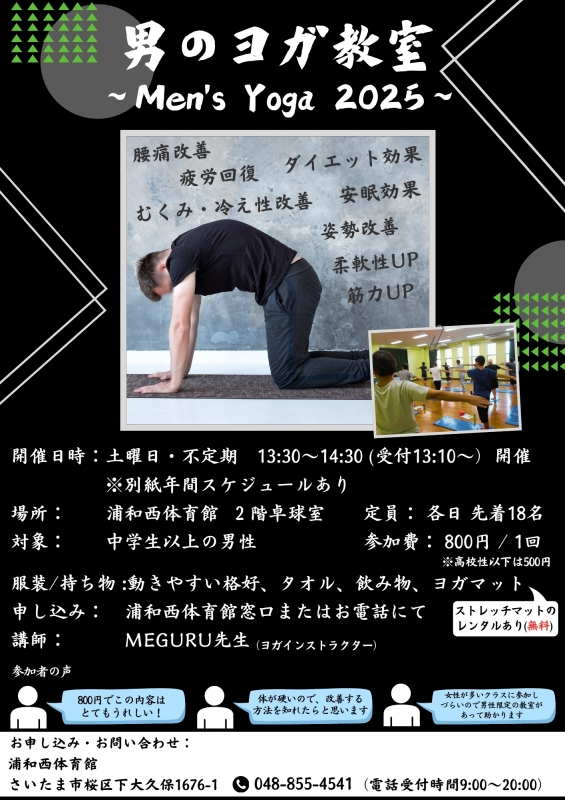 ※当館の男のヨガ教室は入門レベルとなります。